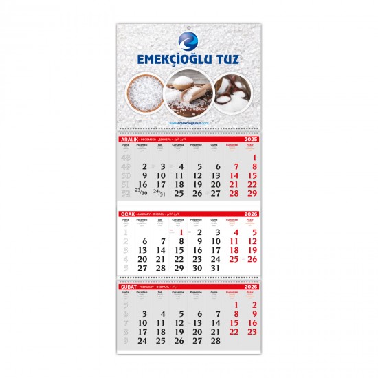 *1 - 2 veya 3 Parça Spiralli *CMYK Baskılı *Yapraklar: 70 gr. 1. Hamur *Sakal Ebat: 31 x 44 cm *Blok Ebat: 31 x 14,6 cm *Reklam Alanı: 31 x 23 cm *Karton: 350 gr. A. Bristol *Sakal Rengi: Kırmızı - Siyah *Gösterge dahil değildir.